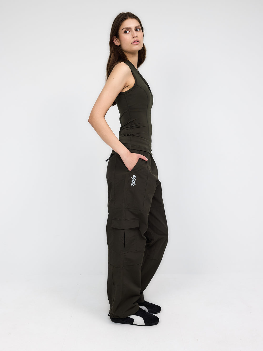 Sporty track pants med masser af lommer og justerbar pasform. Vævet struktur og logo-detaljer for et gennemført look. Snøre i talje og bukseben.
